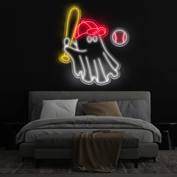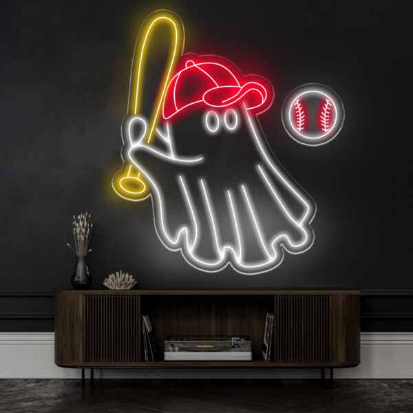 Baseball Ghost Neon Sign – Custom LED Wall Decor, Baseball Fan Gift, Sports Bar Light, Halloween Baseball Art, Unique Baseball Neon Light