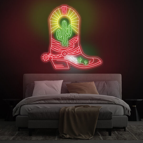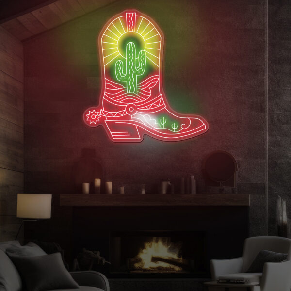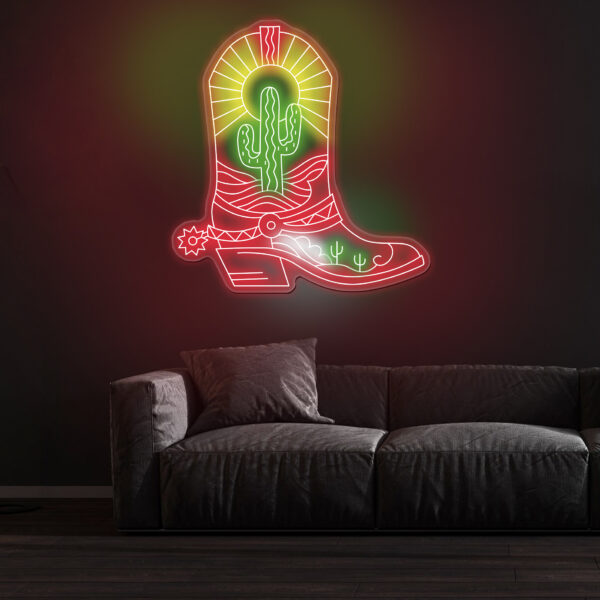 Cowboy Boots Cactus Neon Sign – Cowgirl Boots LED Light, Western Cactus Neon Art, Custom Western LED Decor, Bedroom Decor, Christmas Gifts