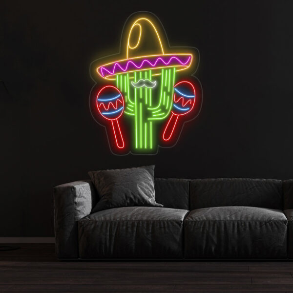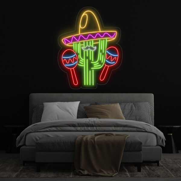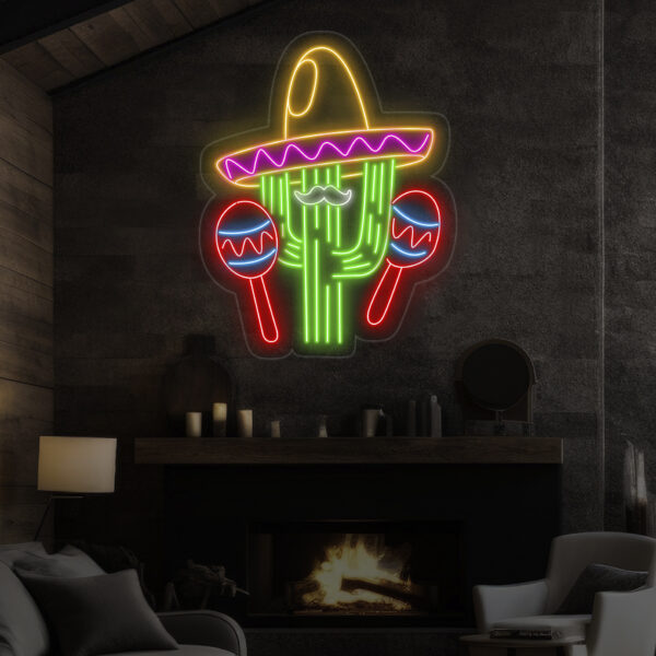 Custom Mexican Cactus Sombrero Neon Light – Fiesta Holiday LED Sign, Mexican Festival Decor, Cactus with Maraca Neon Sign for Party