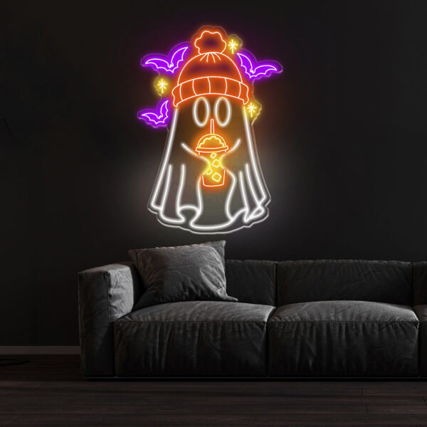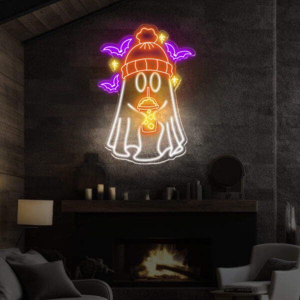 Ghost Coffee Neon Sign, Spooky Boo Sign, Ghost with Coffee LED Light, Spooky Wall Art, Ghost Drinking Coffee Sign, Fall Coffee Lover LED