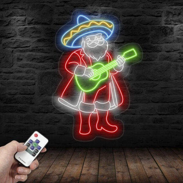 Mexican Santa Neon Sign – Merry Christmas LED Light, Santa Claus with Sombrero Neon Sign, Festive Christmas Wall Art, House Wall Decor