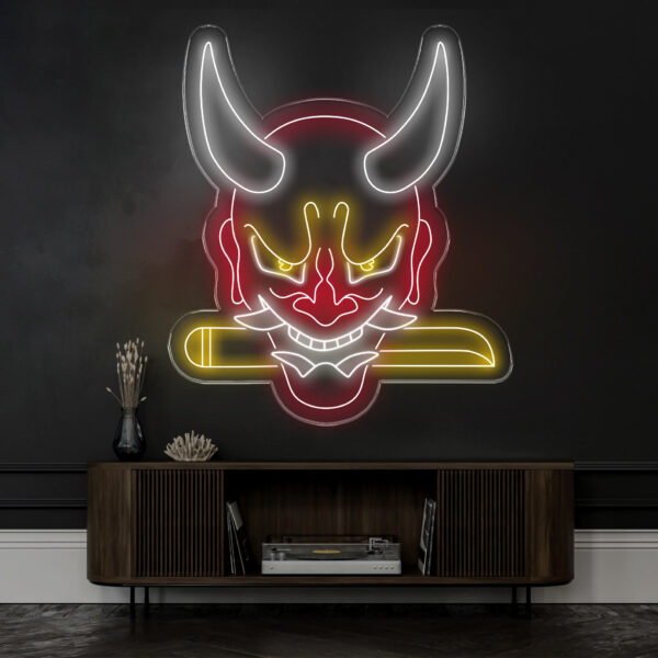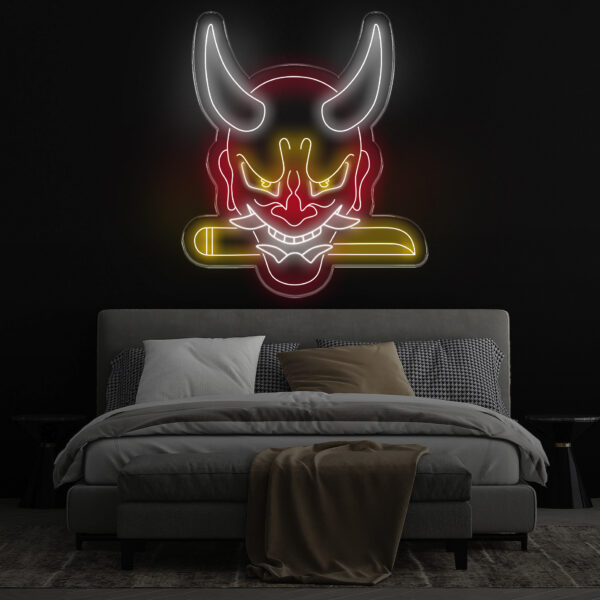 Oni Mask Neon Sign – Japanese Hannya Demon Mask, Samurai Wall Art, Custom Japanese Neon Decor, Hannya Mask LED Light, Anime Neon Sign