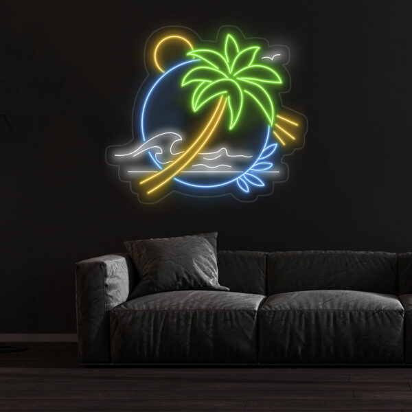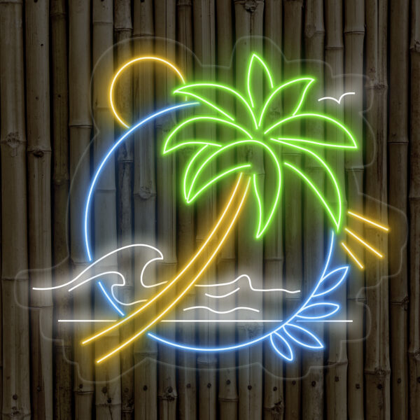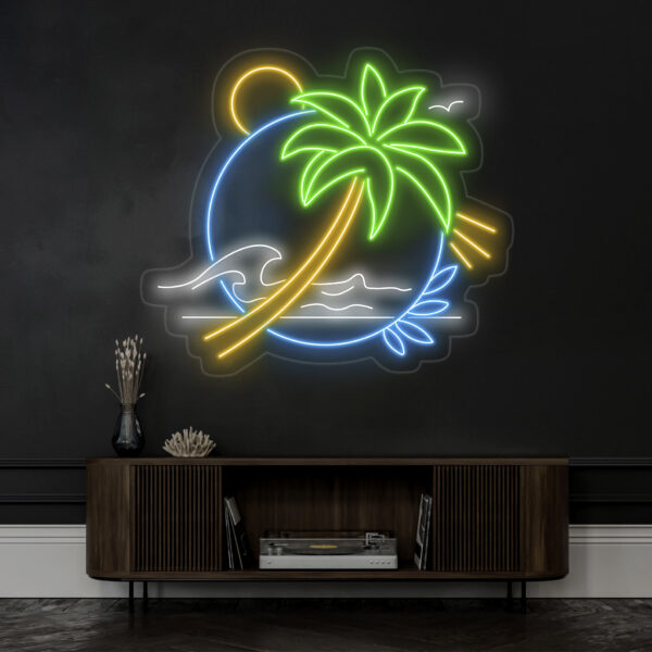 Palm Tree & Wave Neon Wall Art – Custom LED Sign for Kids Room, Bedroom, Game Room Decor, Tropical Neon Light for Wall, Beach Neon Sign
