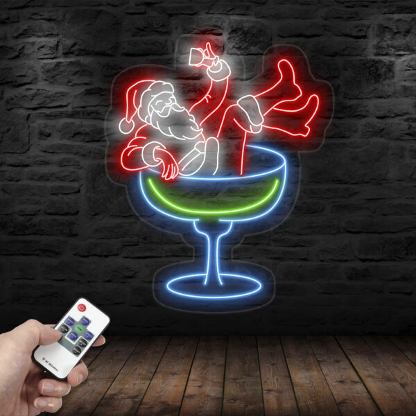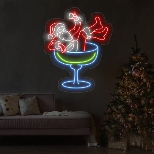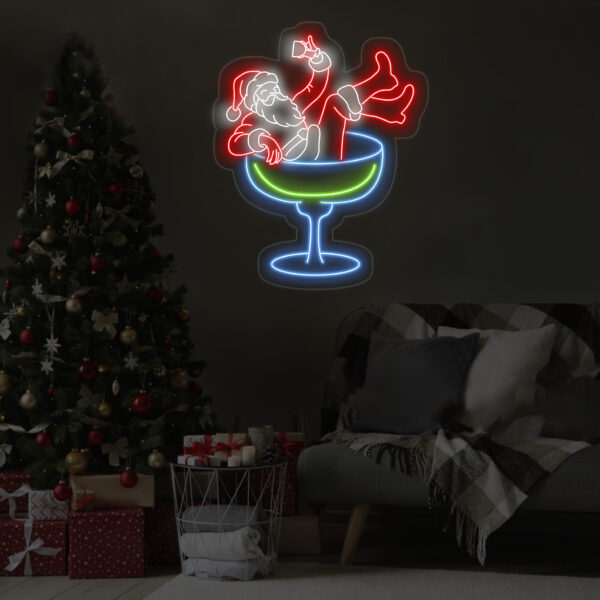 Santa Drinking Martini Neon Sign – Merry Christmas LED Light, Santa Claus Neon Sign, Martini Cocktail Wall Art, Festive House Wall Decor
