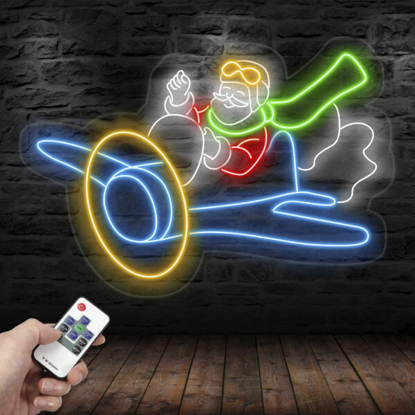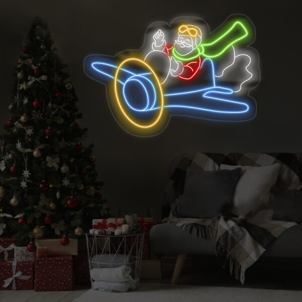 Santa Flying Red Airplane Neon Sign – Merry Christmas LED Sign, Santa Claus Wall Art, Festive LED Light, Christmas House Wall Decor