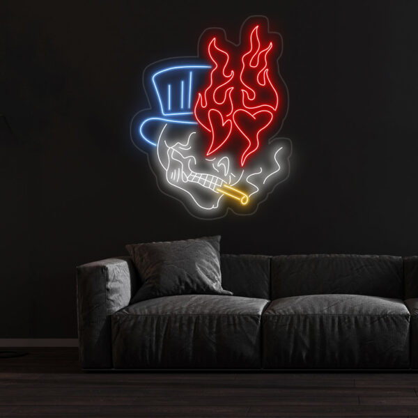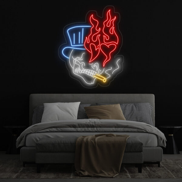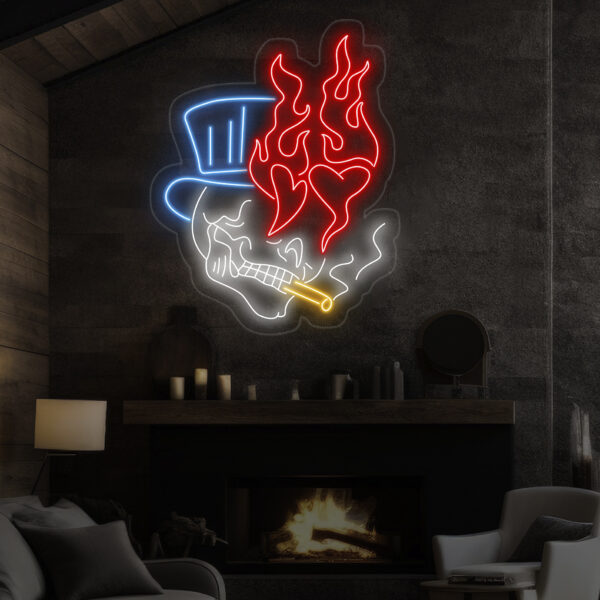 Skull Head Neon Sign – Custom Handmade Fire Neon Light, Unique Wall Decor, Personalized Skull Art, Aesthetic Gift for Home or Man Cave”