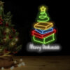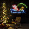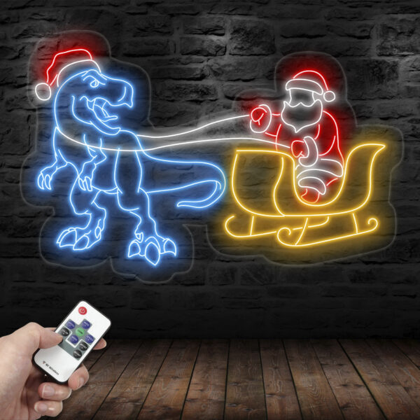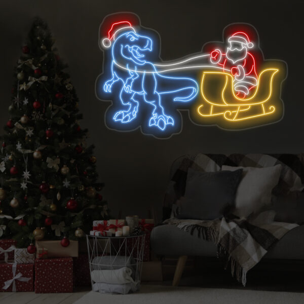 T-Rex Pulling Santa Sleigh Neon Sign – Christmas Dinosaur LED Light, Fun Santa and Dinosaur Neon Art, Festive Holiday Wall Decor