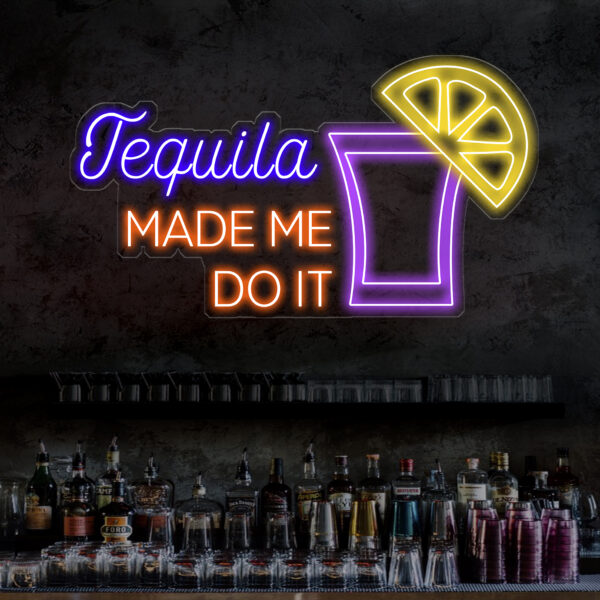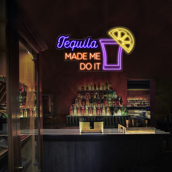 Tequila Made Me Do It Neon Sign – Tequila LED Bar Light, Drink Wall Art, Open Sign Decor, Perfect for Room or Restaurant Decoration